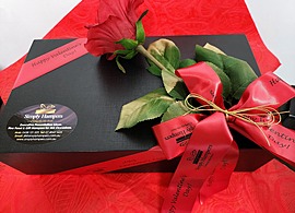 Presented in a quality gift box with magnetic lid and faux Red Rose and message card.