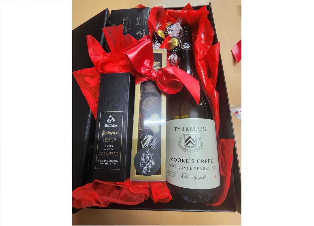Celebrate love in style this Valentine's Day with our exclusive designs. "Love Is" from $125 includes Romance Luxury Handcream and candle in a glass jar from Urban Rituelle, Handmade Chocolates and Bubbles and exquisite faux Red Rose. Personalize your gift with a ribbon bearing your special message at no extra charge.