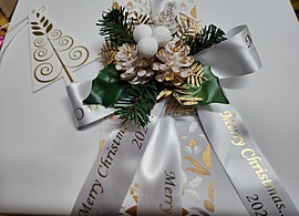 Gold Pine Cone Christmas Pick, Ribbon and Trim and Message Card included